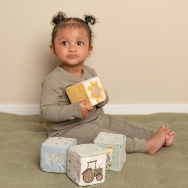 Apila, aprieta, lanza!!! Un juego divertido y sensorial para los más chiquitines. Cada cubo está diseñado para estimular sus sentidos con etiquetas, texturas y colores diferentes.