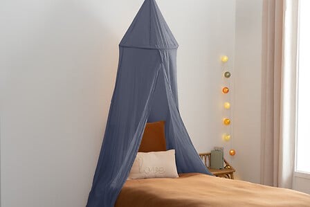 Dosel para cama infantil confeccionado en algodón. Su gran altura te permitirá fijarlo al techo independientemente de la amplitud de la estancia. Su estructura es cilíndrica por lo que caerá a cada lado de la cama aportando un toque de dulzura y elegancia a la habitación de los peques.