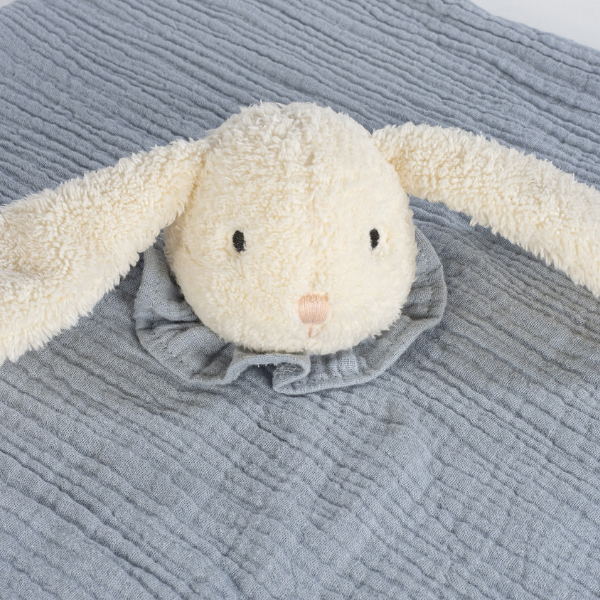 Doudou en forma de conejito. Su agradable tacto ayudará a tu bebé a relajarse, proporcionándole seguridad y confort.
