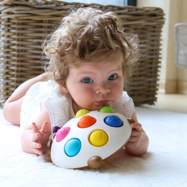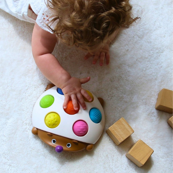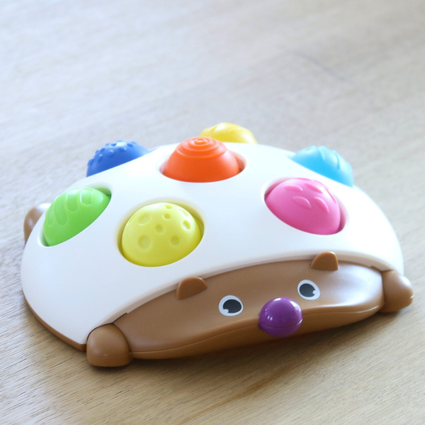 Este simpático erizo despertará el interés de tu peque. Sus púas de colores son suaves botones de silicona que al pulsarlos emiten un curioso sonido. Es un juguete ideal para desarrollar la destreza de los dedos y el deseo de explorar.