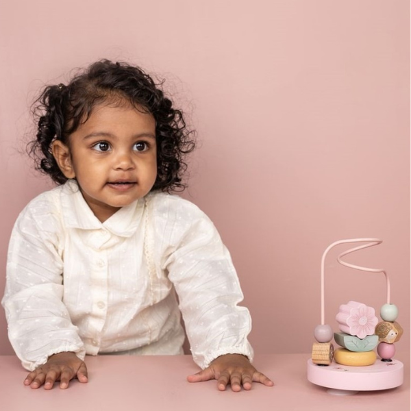 La Espiral de actividades Fairy Garden de Little Dutch es un juguete educativo diseñado para bebés desde el nacimiento, que combina diversión y desarrollo de habilidades motoras finas.