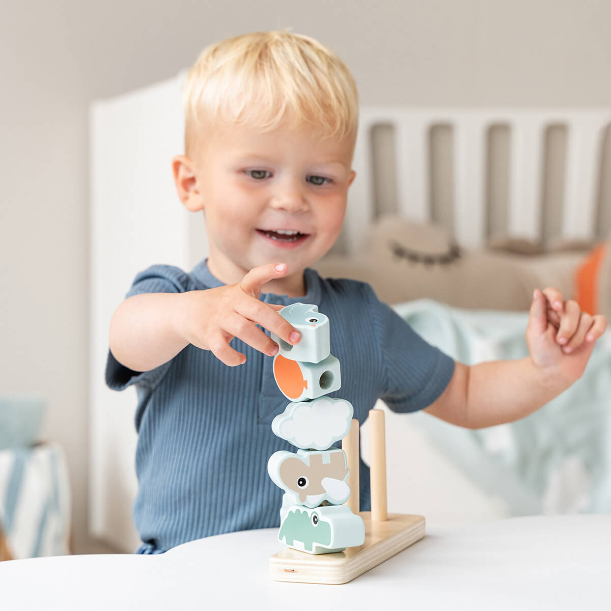 Juego apilable con 6 bloques de diferentes colores, ideal para que los más peques experimenten y creen distintas combinaciones. Este divertido juguete no solo estimula la creatividad con los simpaticos personajes Birdee, Croco y Ozzo, sino que también ayuda a desarrollar las habilidades de coordinación entre los ojos y las manos.