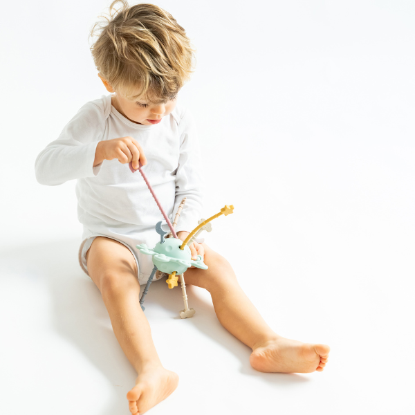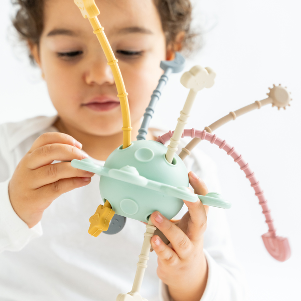 Juguete en forma de planeta, con el que tu peque pasará grandes momentos de diversión, gracias a sus tiras texturizadas y a sus botones a presión.