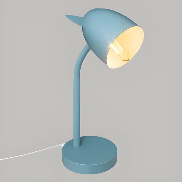 Divertida lámpara con orejitas en color azul. Perfecta para colocarla en un escritorio o mesita de noche.