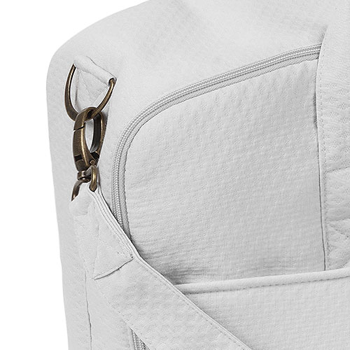 - Composición: tejido exterior de piqué 80% algodón, 20% poliéster, con acabado impermeable. Tejido interior de poliéster resinado.