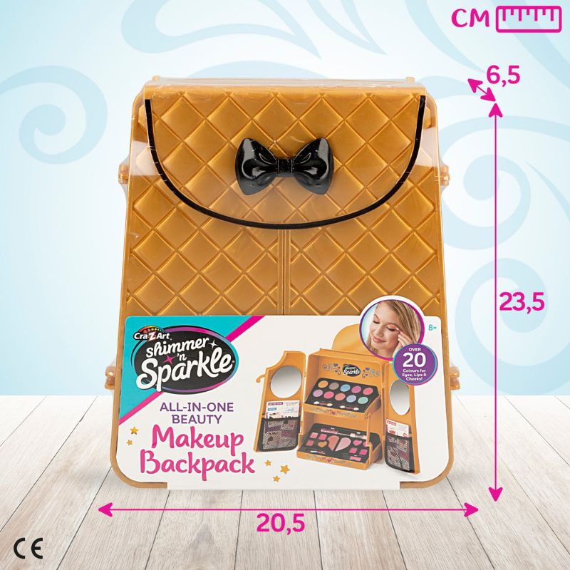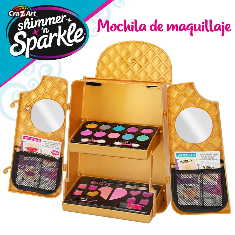 La Mochila de Maquillaje Infantil Todo en Uno de Shimmer ‘n Sparkle es un set de belleza diseñado para que los niños exploren su creatividad y habilidades en el arte del maquillaje de manera segura y divertida.
