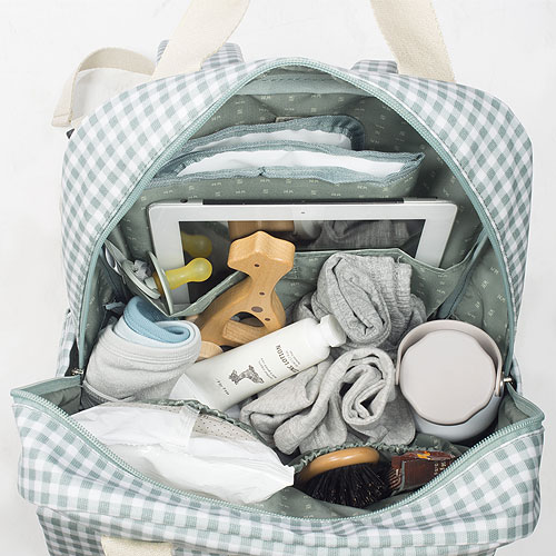 55 valoraciones en Mochila maternal I Love Vichy verde