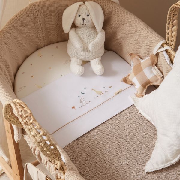 Moisés de mimbre con edredón, cojín, interior acolchado y colchón Happy Forest
