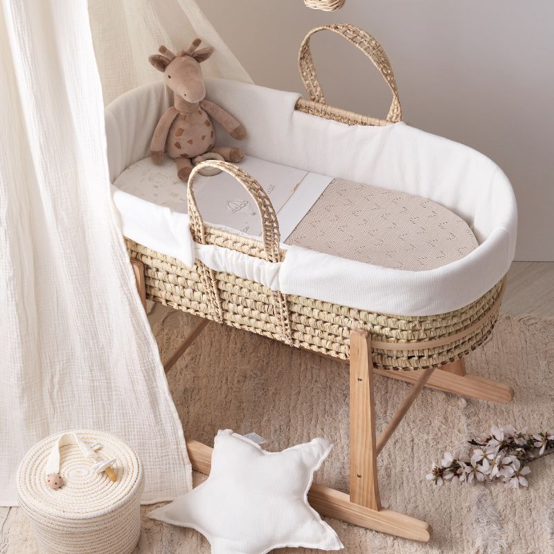 • Incluye: moisés de mimbre con edredón, cojín, interior acolchado y colchón (40x80cm.)