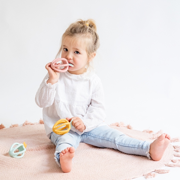 Este divertido mordedor aliviará las molestias que aparecen en el proceso de la salida de los primeros dientes.