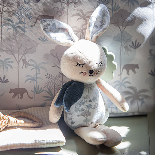 Este peluche, con un tacto muy agradable y suave, será el compañero ideal de tu bebé, tanto para irse a dormir con su compañía cómo en la etapa de dentición.
