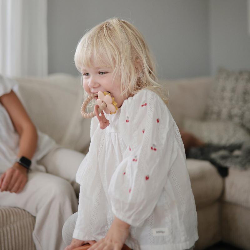 Anillo de dentición con motivos de la naturaleza, diseñado para aliviar las encías doloridas y proporcionar alivio a los más pequeños y tranquilidad a los padres. El mordedor tiene diferentes formas y texturas, que estimularán los sentidos de los niños mientras hunden sus encías en el suave material de silicona 100% alimentaria. Edad recomendada: 3+ meses. Medida: 8cm.