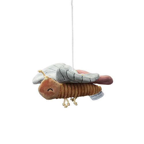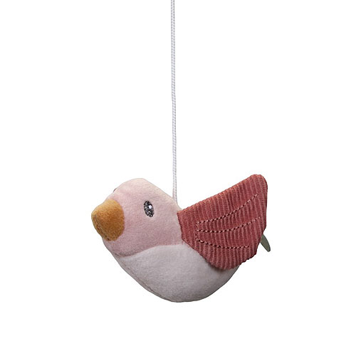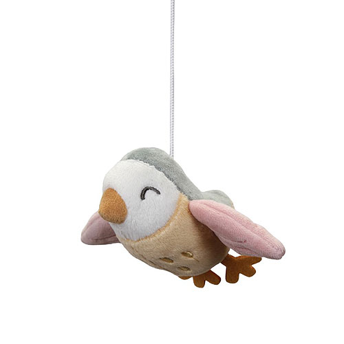 Los cinco protagonistas de la colección giran en este precioso móvil: la pajarita Olivia, la mariposa Lily, las dos florecillas y el gorrión Abby.