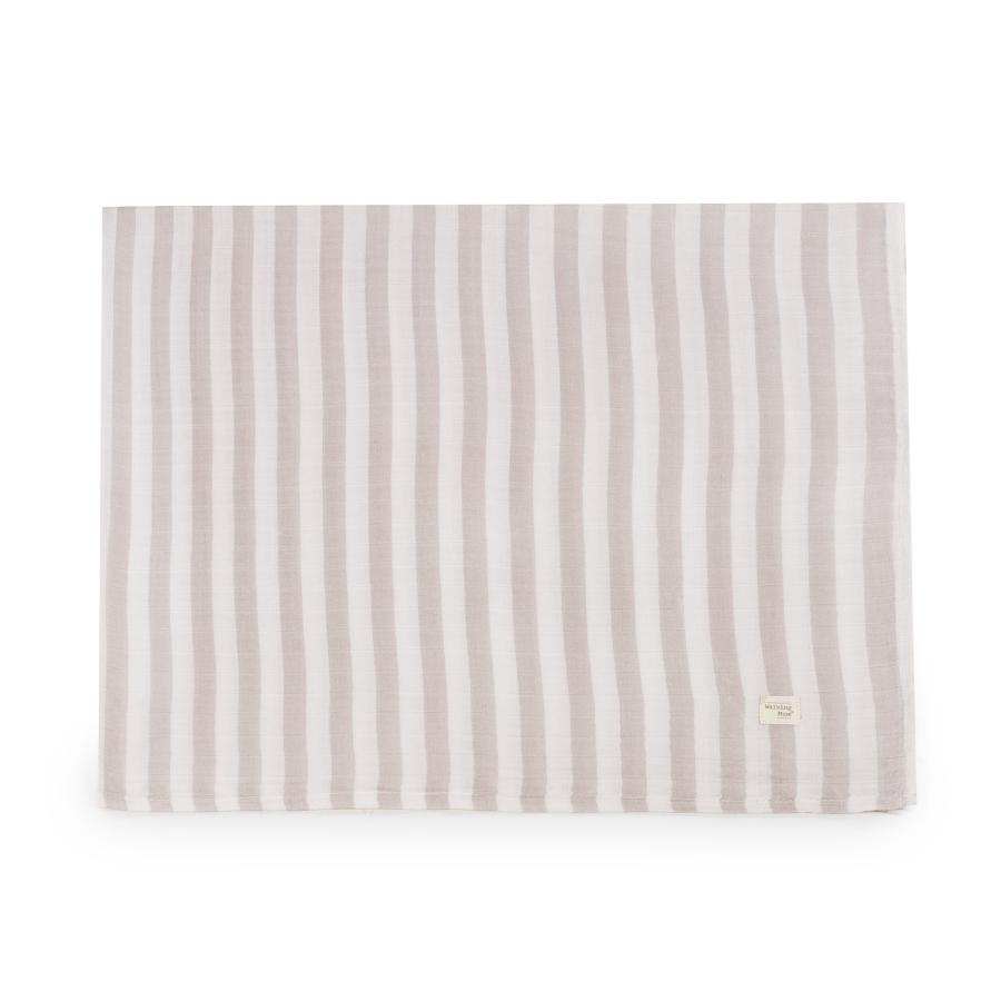Con un diseño moderno de rayas y una confección en materiales de alta calidad, esta muselina es perfecta para múltiples usos, ofreciendo comodidad y estilo en cualquier situación.