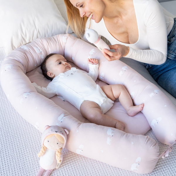 Permite mantener al bebé cómodo y seguro en la cama, el suelo o la misma cuna.