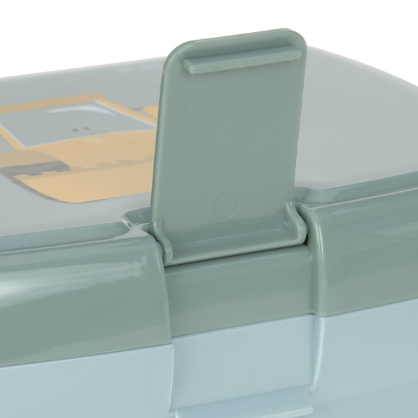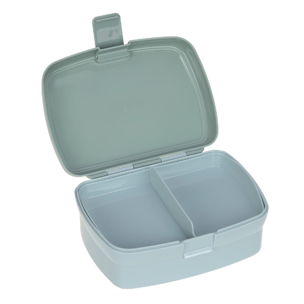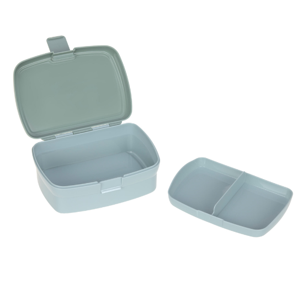 - La bandeja superior es ideal para frutas y bocadillos pequeños, mientras que el compartimento inferior ofrece espacio completo para sándwiches o panecillos.