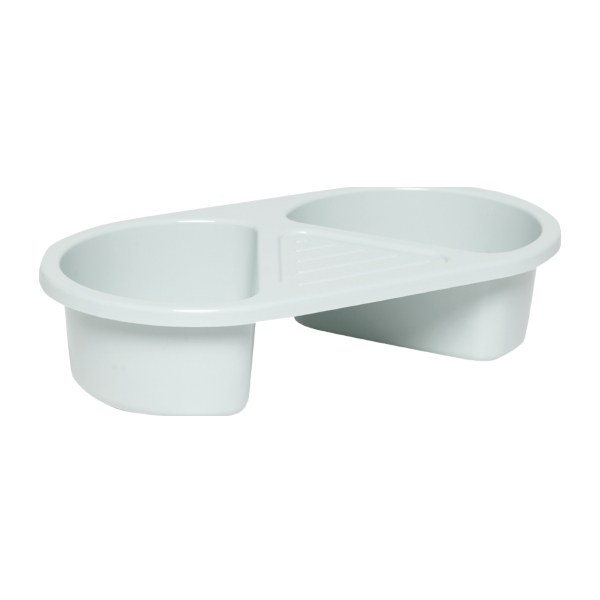 Práctico recipiente con dos zonas de lavado, una para el agua limpia para el aclarado y otra para el agua jabonosa. Ideal para un aseo rápido.