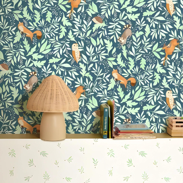 Papel pintado Les Mini Mondes – Bosque Verde Agua