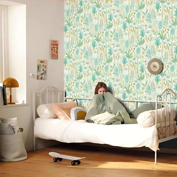 Papel pintado Les Mini Mondes – Hierbas Florales Verde