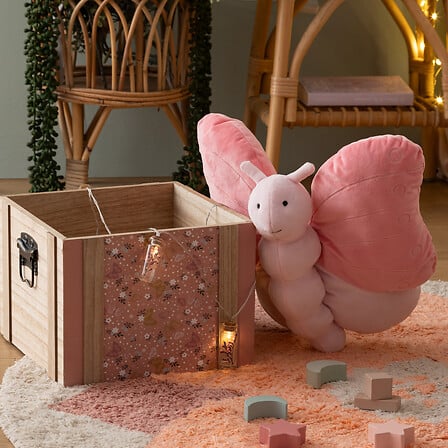 Descubre el encantador peluche mariposa de Atmosphera, un accesorio perfecto para acompañar los dulces sueños de los más pequeños y añadir un toque mágico a su espacio.