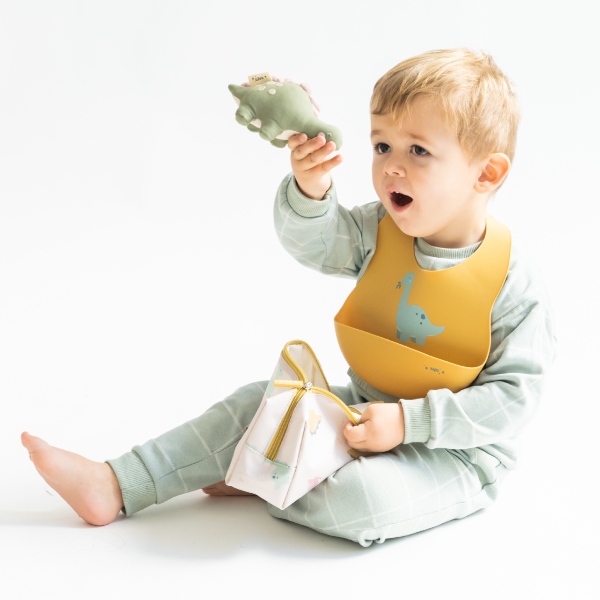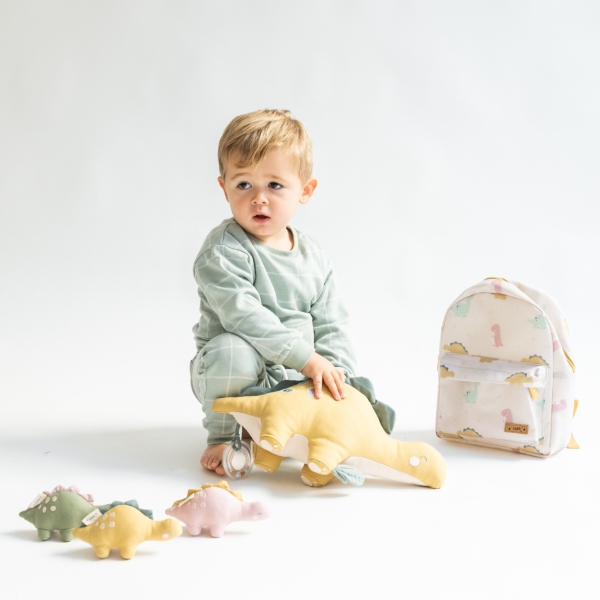 A tu peque le encantará este dinosaurio en formato pequeño, ideal para sus manitas. Es suave y blandito, pasará horas de diversión al ritmo del sonajero en sonido cascabel que incorpora.