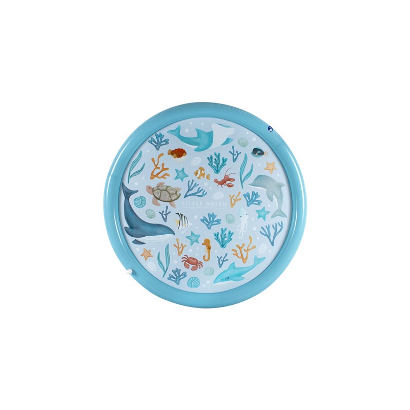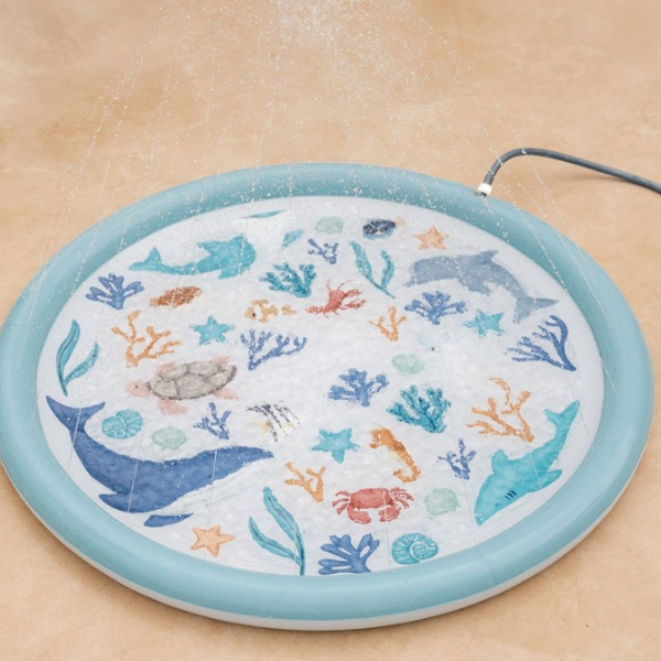 Playmat en color azul con diseño de animales marinos. Será tu mayor aliado, en los días calurosos de verano, proporcionando momentos de gran de diversión a tu peque. Para su funcionamiento, hay que conectar el playmat, a una manguera de jardín dejando rociar el agua desde los aspersores, creando un paraíso acuático lúdico.