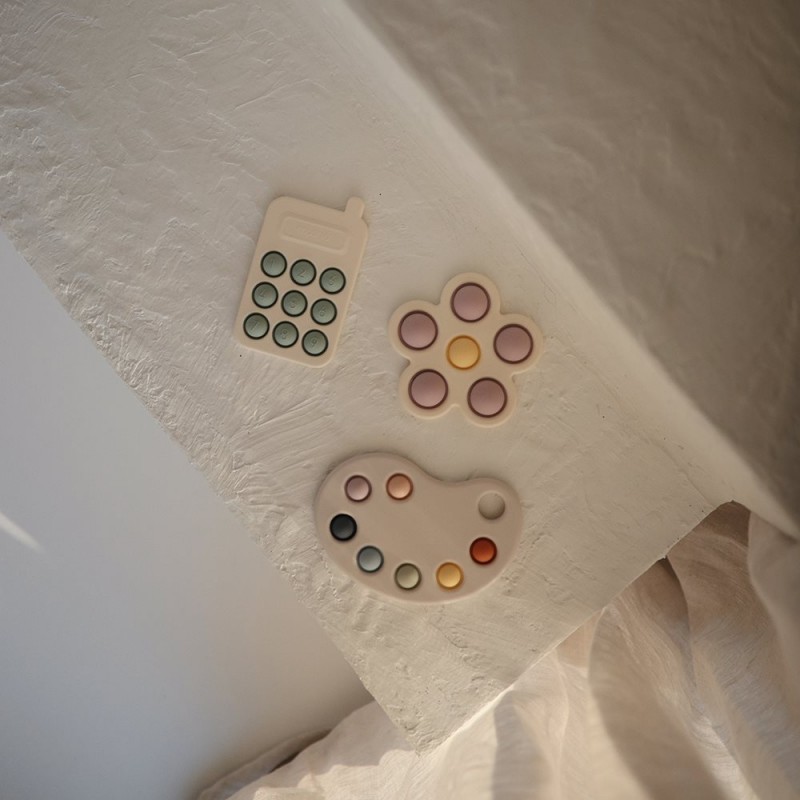 Juguete de presión, en forma de paleta de colores diseñado para manos pequeñas. Los peques se divertirán apretando las burbujas y viendo como aparecen por el otro lado. Además, les encantará su sonido y les ayudará a relajarse. Este juguete promueve las habilidades motoras y fomenta la exploración sensorial.