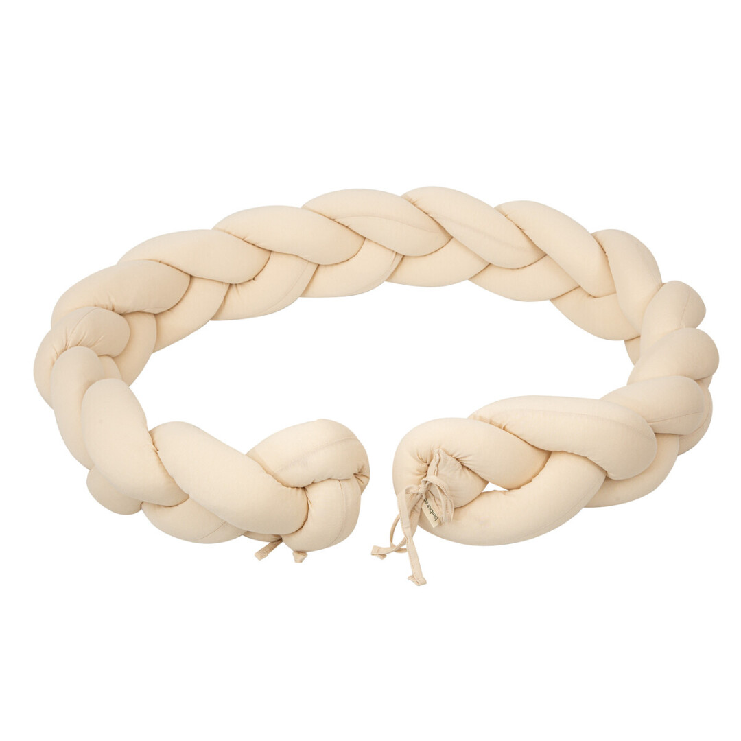 La trenza-protector para cuna de Bimbidreams es un accesorio multifuncional que proporciona protección y confort al bebé mientras duerme.
