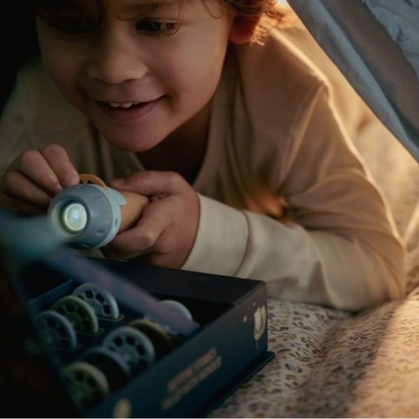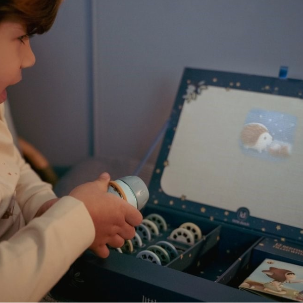 Haz que las historias cobren vida con esta linterna proyectora para niños, perfecta para estimular la imaginación y el amor por los cuentos. Incluye 12 discos, cada uno con su propia historia ilustrada, que se proyectan en la pared para crear un ambiente mágico antes de dormir o en cualquier momento del día. Cada historia viene acompañada de un folleto con las ilustraciones correspondientes, permitiendo seguir el relato visualmente. La linterna cuenta con un mango de madera resistente y funciona con pilas, lo que facilita llevarla a cualquier lugar. Cuando termines de contar historias, puedes guardar la linterna y todos sus accesorios en la caja de almacenamiento incluida, manteniéndolo todo organizado y listo para la próxima aventura. Es el regalo ideal para niños curiosos y amantes de los cuentos, ya que les permite descubrir, inventar y experimentar historias de una forma única y divertida.