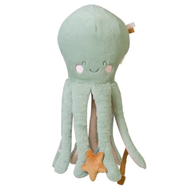 Es momento de pasarlo en grande con este pulpo gigante. En sus 8 tentáculos, esconde grandes secretos para estimular la curiosidad del bebé y la coordinación mano-ojo. Desde un espejo, distintas texturas, 2 sonajeros y sonido mec-mec.