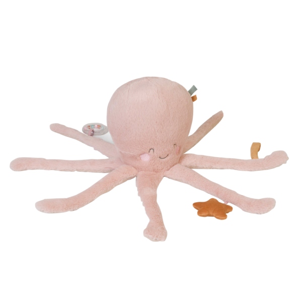 Es momento de pasarlo en grande con este pulpo gigante. En sus 8 tentáculos, esconde grandes secretos para estimular la curiosidad del bebé y la coordinación mano-ojo. Desde un espejo, distintas texturas, 2 sonajeros y sonido mec-mec.