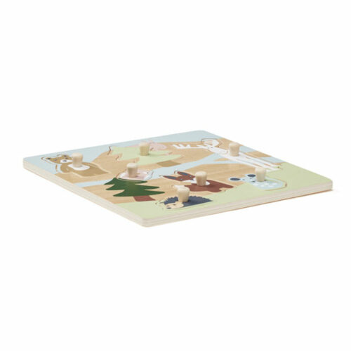 - Animalitos de una sola pieza con pomo de madera para facilitar el agarre y su colocación. Fáciles de agarrar para manos pequeñas y estimulan la coordinación ojo a mano.