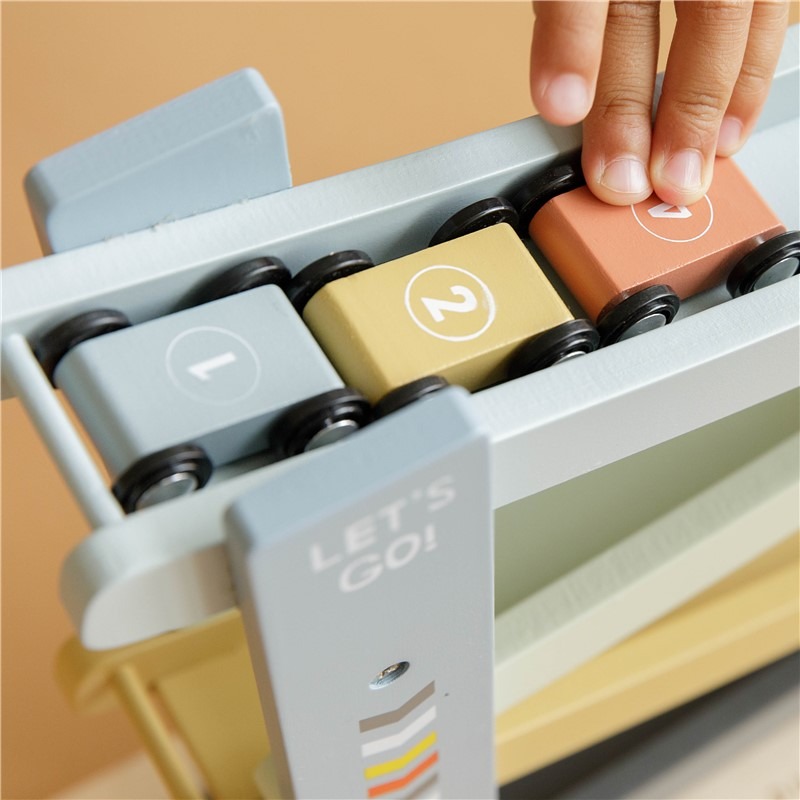 Rampa de carreras en color rosa que incluye 4 coches. Tu peque se lo pasará en grande. Coloca los autos uno por uno en la parte superior de la pista de carreras, déjalos ir y correrán hacia abajo.