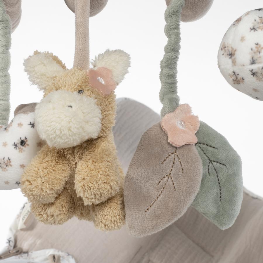 Diseñado con materiales ultrasuaves, este juguete interactivo se adapta fácilmente a cochecitos, sillas de auto o cunas, proporcionando horas de diversión y aprendizaje sensorial.