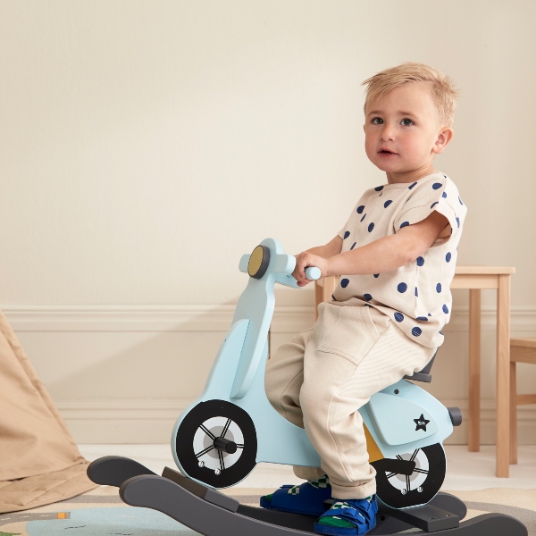 Un genial scooter balancín con reposapiés y asas de fácil agarre. El scooter cuenta con raíles antivuelco que permiten conducir con mayor seguridad. Un divertido juguete que ayudará a los peques a mejorar el equilibrio.