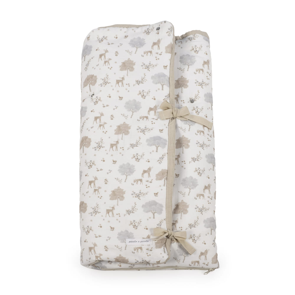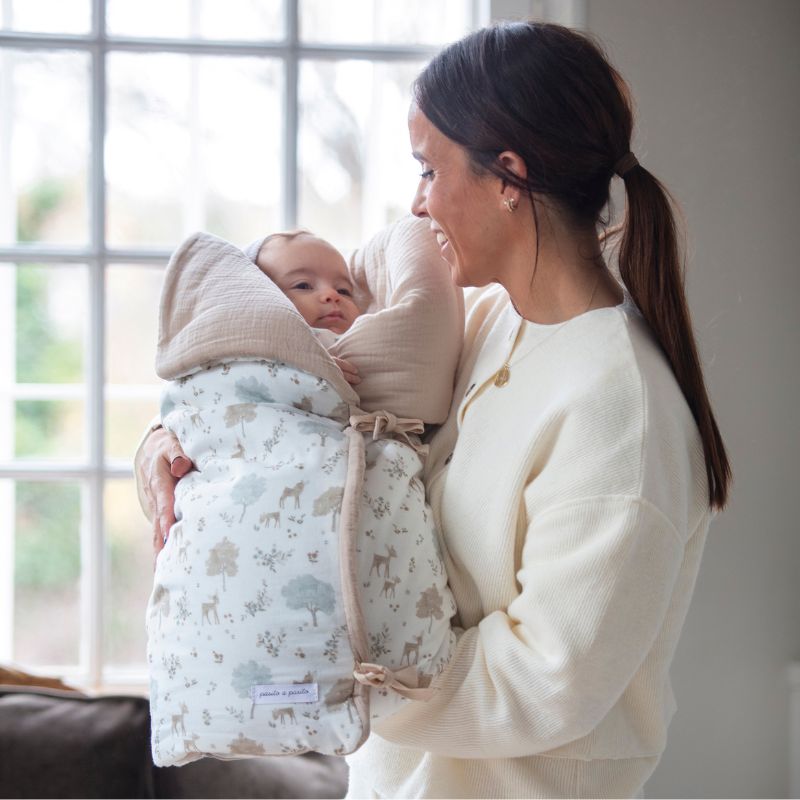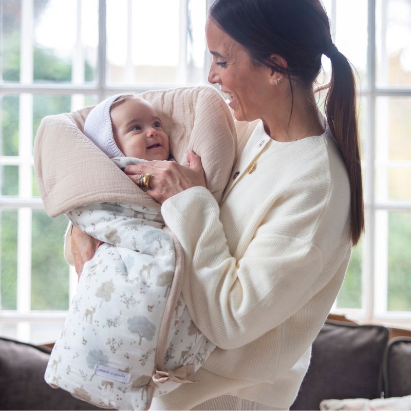 • Diseño versátil: Se puede utilizar como saco arrullo para paseos o como manta para la cuna, adaptándose a las necesidades del día a día.