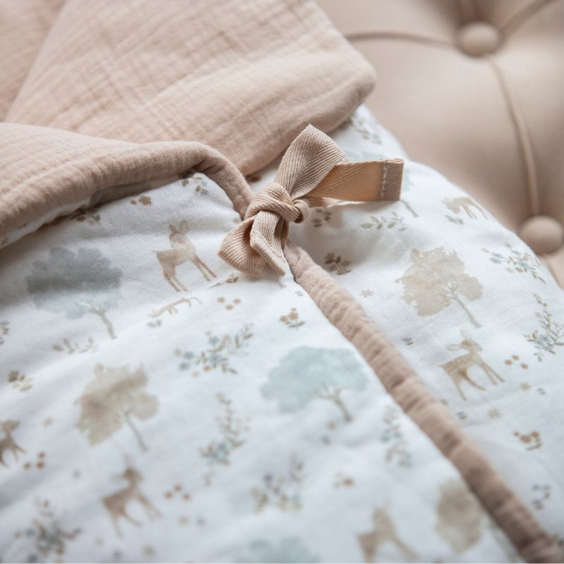 Con un diseño elegante y funcional, este arrullo se adapta a diferentes usos, convirtiéndose en una manta ideal para paseos en el capazo o momentos de descanso en la cuna.