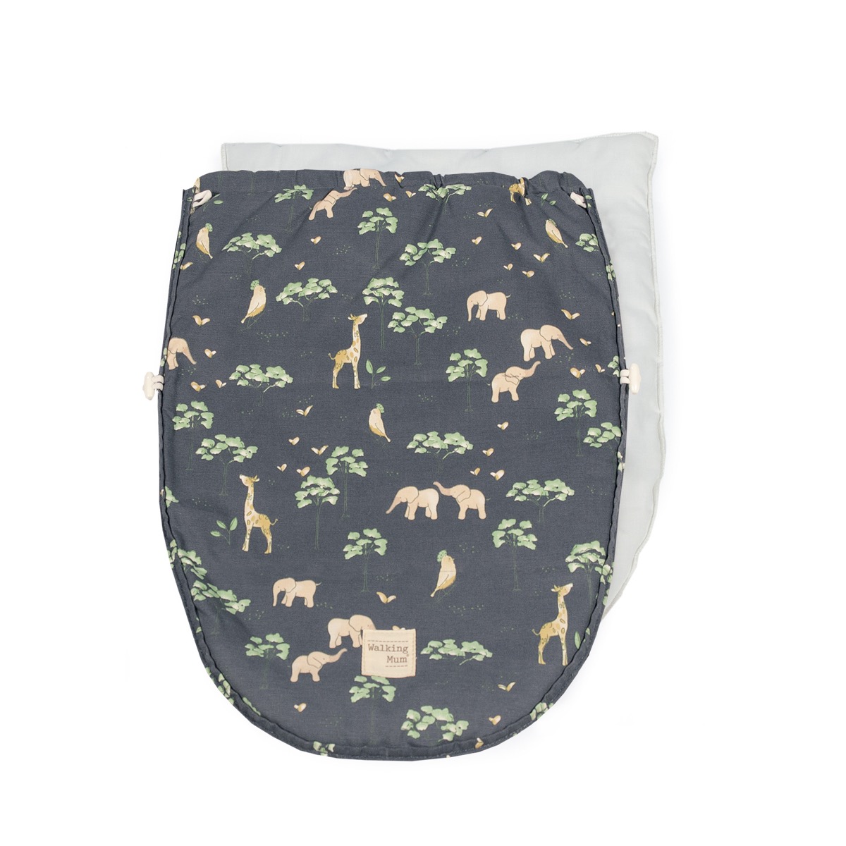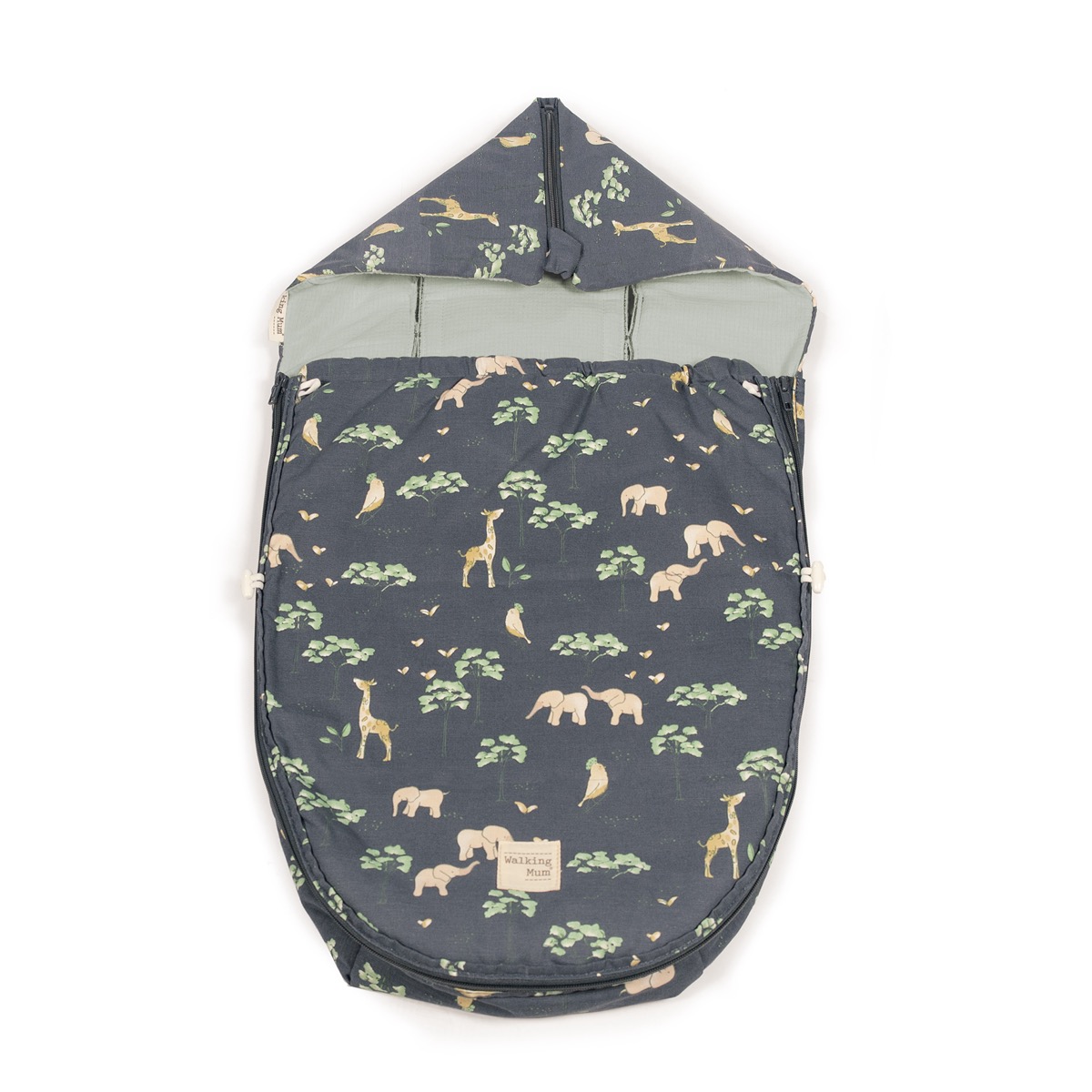 Funda con saco con estampado sabana. Se adapta mediante unas aperturas (ojales) y ajustes a la mayoría de cucos y portabebés del mercado. Es ideal para los meses de primavera y de otoño. Cuenta con un material que evita la sudoración excesiva del bebé, protegiendo también la silla. Podrás sacar a tu bebé del carro a la cuna sin incomodarlo.