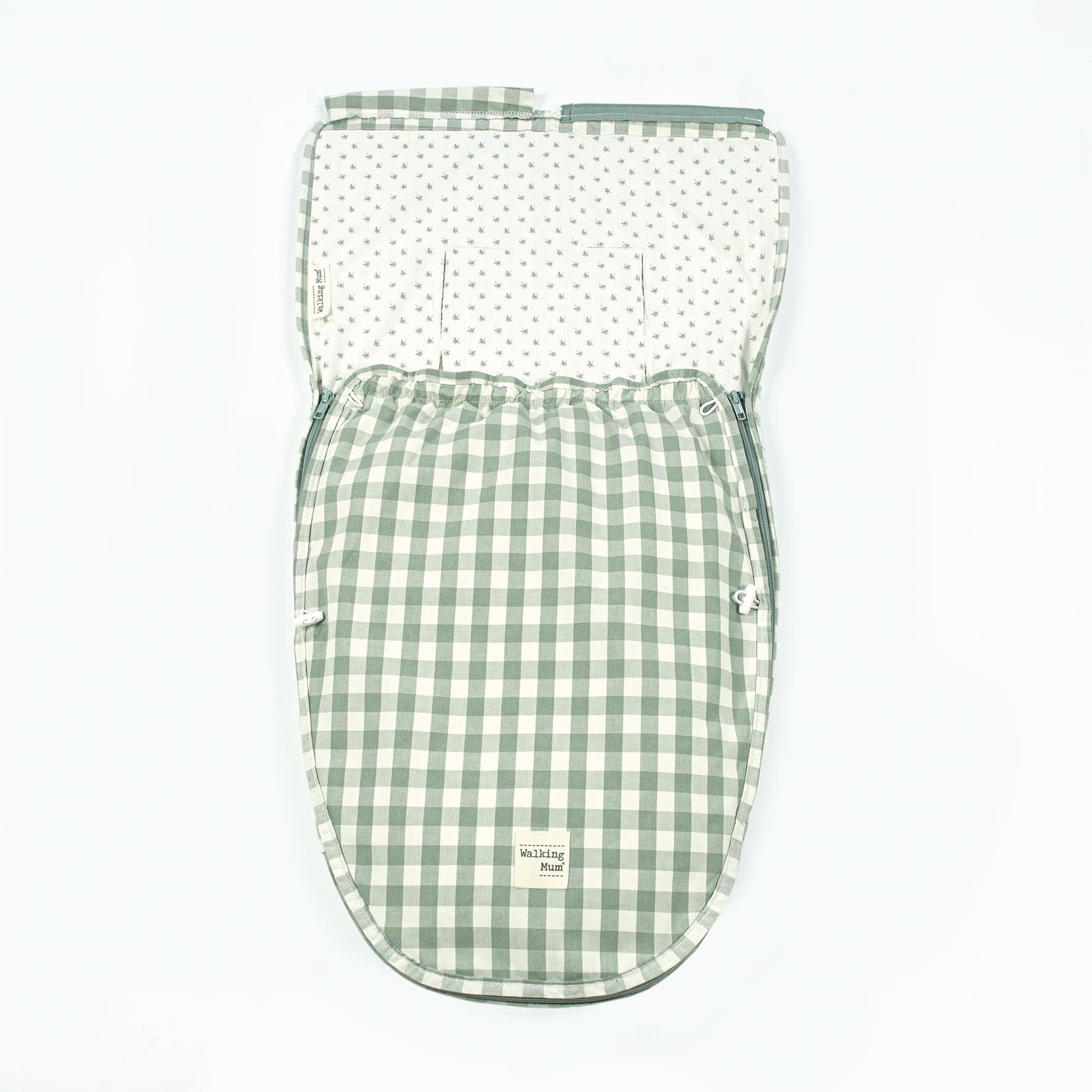 Saco para cuco 2 en 1 de entretiempo con estampado vichy. Se adapta mediante unas aperturas (ojales) y ajustes a la mayoría de cucos y portabebés del mercado. Es ideal para los meses de primavera y de otoño. Cuenta con un material que evita la sudoración excesiva del bebé, protegiendo también la silla. Podrás sacar a tu bebé del carro a la cuna sin incomodarlo.