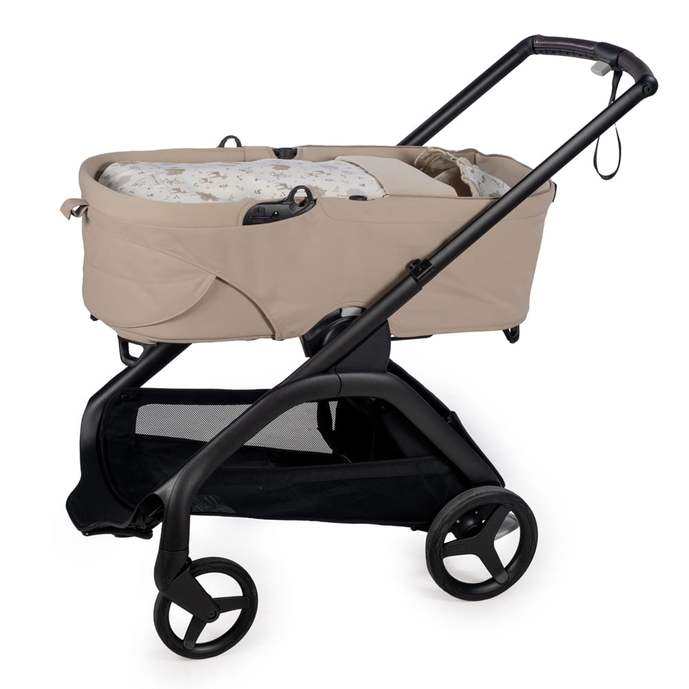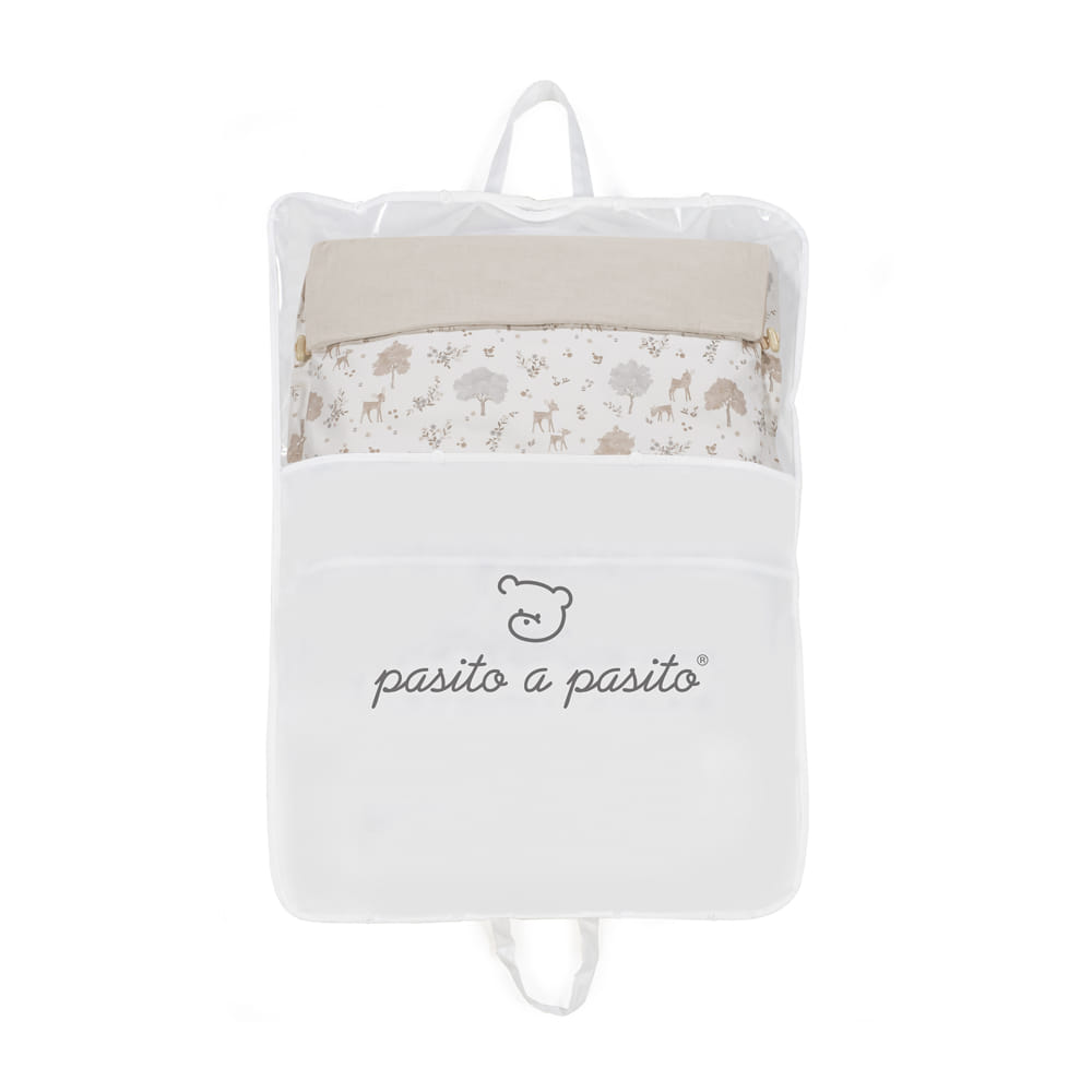 Al desenfundar la base, se convierte en una colchoneta ligera para la silla de paseo. Su diseño crea un nido acogedor que mantiene al bebé arropado y protegido en días de brisa.