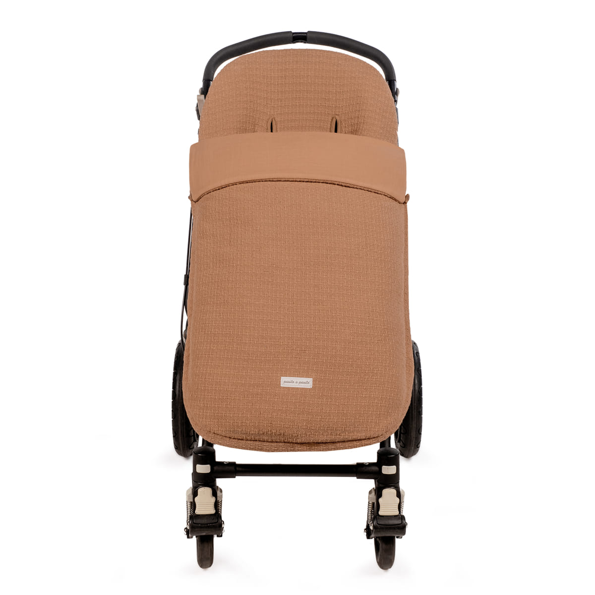 Saco para silla de paseo confeccionado en un suave tejido de leno y bambula. Es universal, por lo que se adapta a la mayoría de sillas del mercado. El respaldo está fabricado en tejido de malla para evitar la sudoración excesiva del bebé y aislar la humedad. Cuenta con reposapiés plastificado para poder facilitar la limpieza. Además dispone de de varias aperturas (ojales) y ajustes para adaptar el saco a la silla y hacer que el paseo de tu bebé sea más seguro y cómodo.