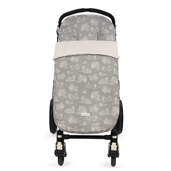 Saco para silla de paseo confeccionado en un suave tejido estampado y bambula es universal, por lo que se adapta a la mayoría de sillas del mercado. El respaldo está fabricado en tejido de malla para evitar la sudoración excesiva del bebé y aislar la humedad. Cuenta con reposapiés plastificado para poder facilitar la limpieza. Además dispone de de varias aperturas (ojales) y ajustes para adaptar el saco a la silla  y hacer que el paseo de tu bebé sea más seguro y cómodo.