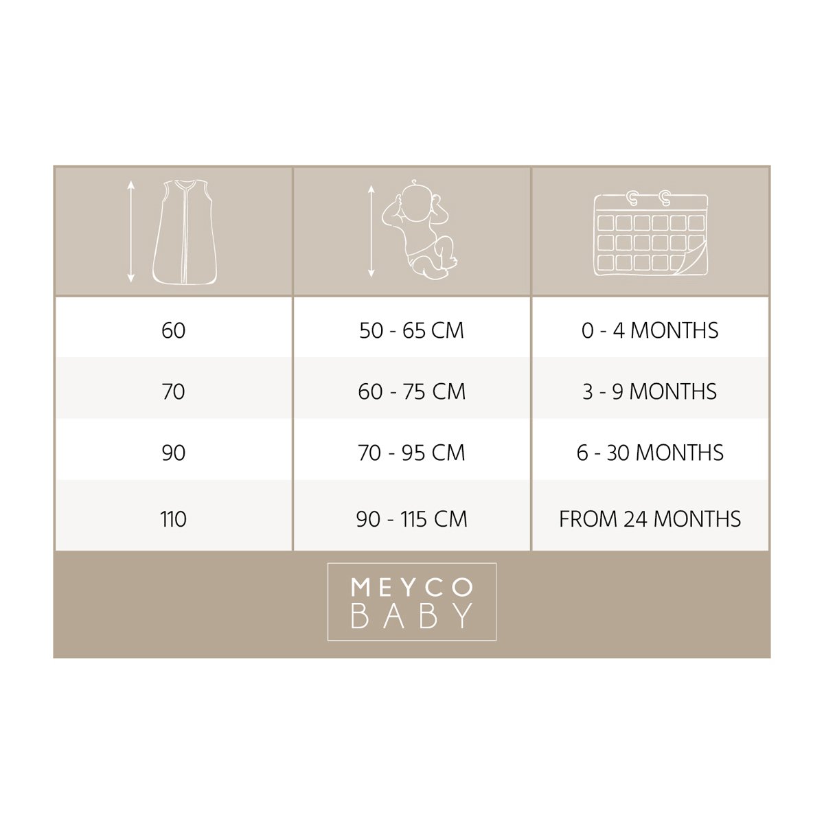 • 90 cm: Adecuado para bebés de 6 a 30 meses (longitud: 70 a 95 cm).
