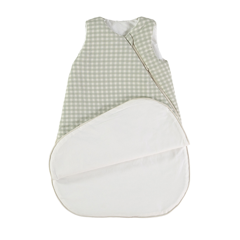 El saco de dormir Checks de Petit Praia, ofrece seguridad y confort, envolviendo al bebé en un entorno suave y libre de mantas sueltas, ideal para su descanso y desarrollo. Su diseño ligero y transpirable es perfecto tanto para usar en casa como en viajes, proporcionando una solución práctica y segura para el sueño del bebé.