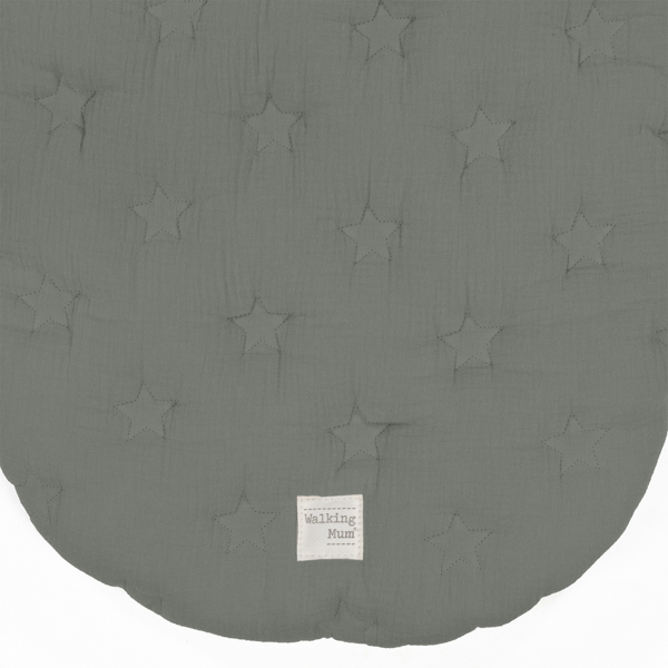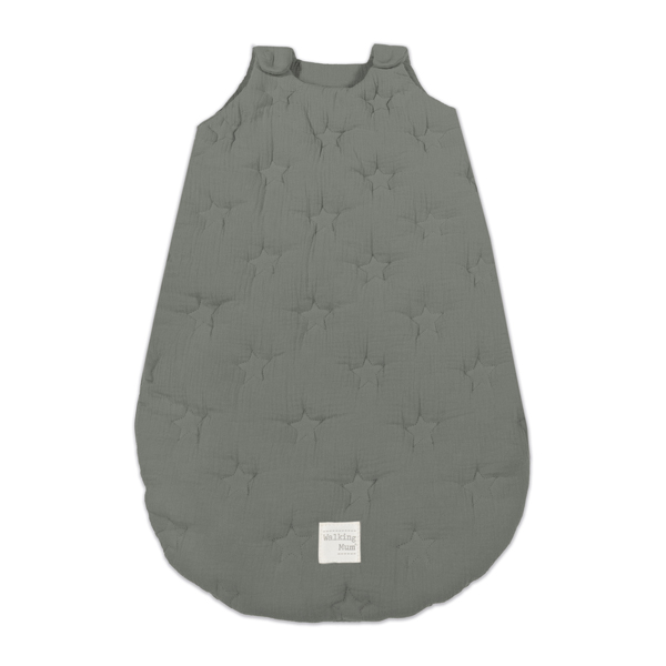 Saco para dormir en color verde con bordado de estrellas. Ofrece el máximo confort y seguridad de los bebés durante sus horas de sueño. El diseño sin mangas permite libertad de movimiento, mientras mantiene al bebé abrigado durante toda la noche. Se cierra con botones a presión en los tirantes para un ajuste seguro y fácil colocación, permitiendo un acceso rápido y cómodo. Está diseñado para mantener al bebé arropado de manera segura, evitando el riesgo de asfixia con mantas sueltas.