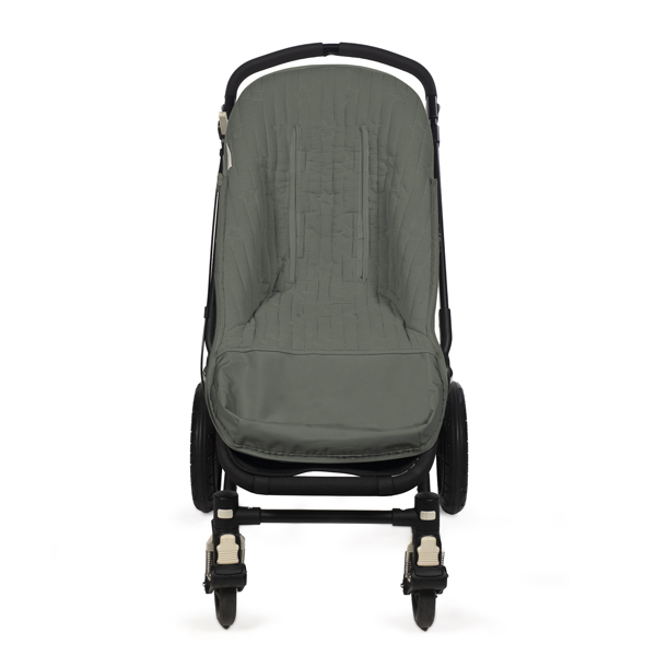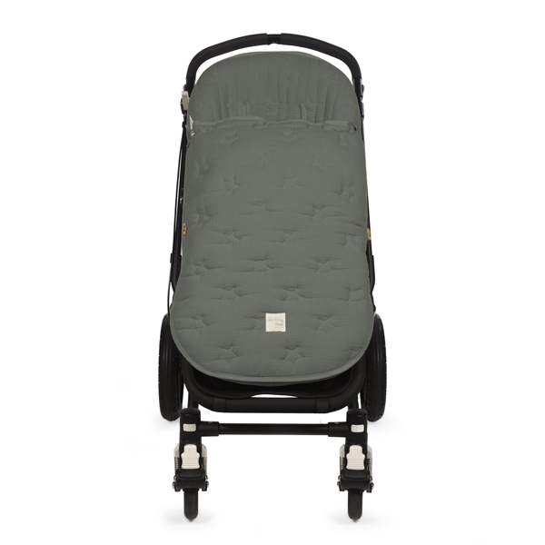 Funda en color verde, con bordado de estrellas. Es ideal para cubrir la base de la silla de paseo. Incorpora un saco para cubrir a tu bebé durante los meses de primavera y otoño. Es universal, por lo que se adapta a la mayoría de sillas del mercado. El respaldo está fabricado en un material que evita la sudoración excesiva del bebé y aisla la humedad. Cuenta con una base en el reposapiés en poliéster para poder facilitar la limpieza. Además dispone de de varias aperturas (ojales) y ajustes para adaptar el saco a la silla y hacer que el paseo de tu bebé sea más seguro y cómodo.