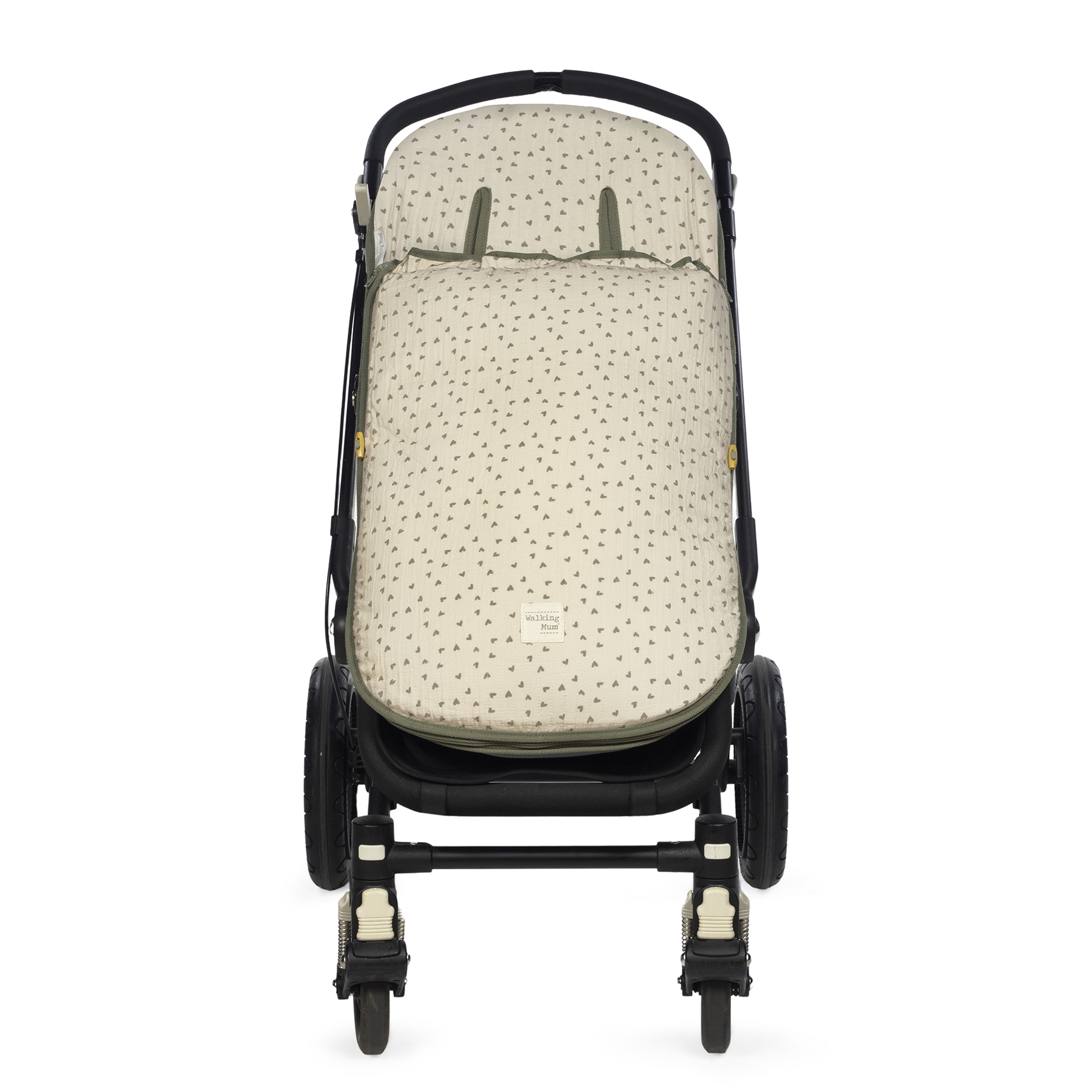 Funda con estampado de corazones, ideal para cubrir la base de la silla de paseo. Incorpora un saco para cubrir a tu bebé durante los meses de primavera y otoño. Es universal, por lo que se adapta a la mayoría de sillas del mercado. El respaldo está fabricado en tejido de malla para evitar la sudoración excesiva del bebé y aislar la humedad. Cuenta con una base en el reposapiés en poliéster para poder facilitar la limpieza. Además dispone de de varias aperturas (ojales) y ajustes para adaptar el saco a la silla y hacer que el paseo de tu bebé sea más seguro y cómodo.
