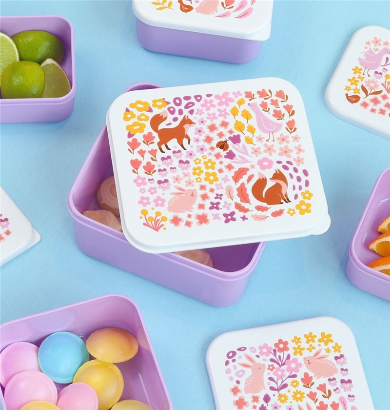 Este práctico set de fiambreras para snacks es ideal para llevar la comida al colegio o fuera de casa.