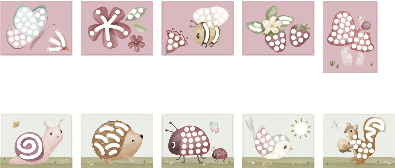 Set de pintura para dedos Fairy Garden con 10 tarjetas impresas y pintura para dedos de 4 colores.