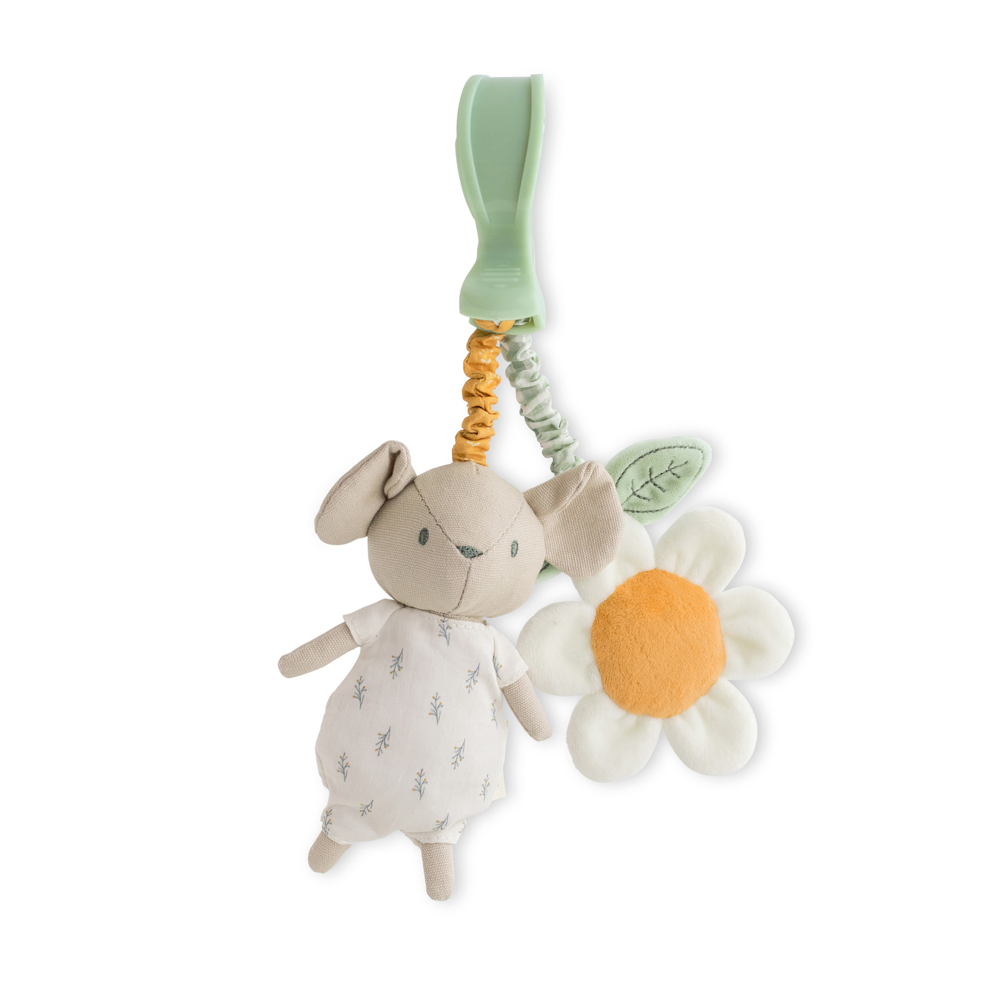 ¡Haz que cada paseo sea una aventura llena de diversión con el Sonajero con Pinza Mousie “Spring Cottage”.